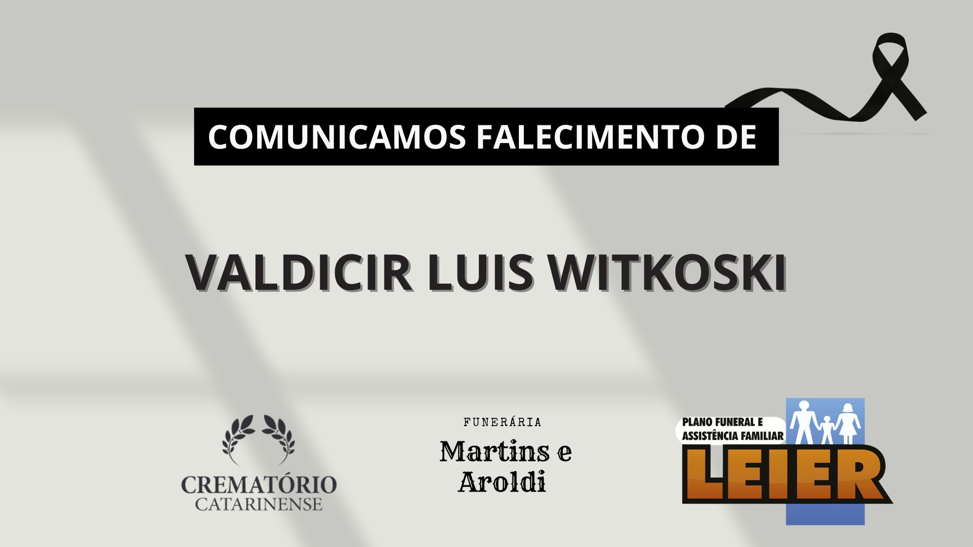 Plano Leier e Funerária Martins e Aroldi informam o falecimento de Valdicir Luis Witkoski