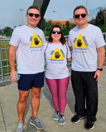 Entre os apoiadores estavam a OAB de Jaraguá do Sul, representantes da empresa WEG, os bombeiros voluntários e a Lunelli, que, além da entrega das camisetas, esteve presente durante a atividade. “Foi um momento muito positivo, um evento bem-sucedido, com um dia lindo, onde pudemos dialogar e promover essa reflexão tão importante sobre saúde mental”, completa o Dr. Rogério Barbosa.