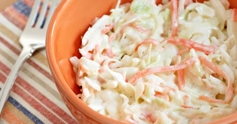 Esse prato apareceu lá pelo fim do século dezoito, porque, precisava esperar criarem a maionese. Cole Slaw é, literalmente, Salada de Repolho.