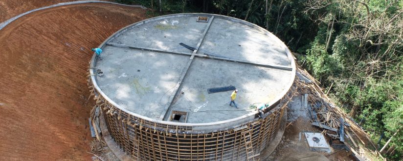 A estrutura passa agora pelo processo de curagem do cimento e o próximo passo da obra é realizar a sua impermeabilização para, posteriormente, realizar as interligações para colocar o reservatório em funcionamento nos próximos meses.