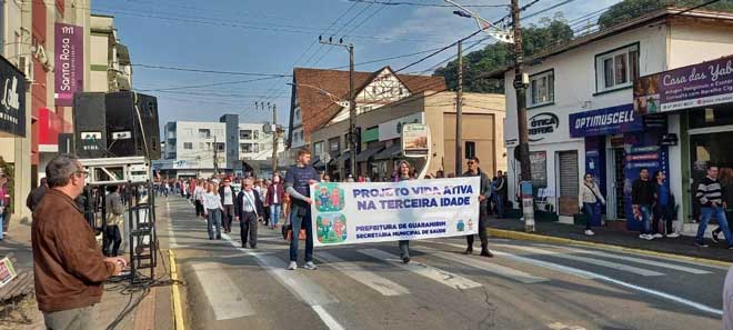Cerca de 20 mil pessoas, segundo cálculos, tomaram as ruas centrais de Guaramirim para participar e acompanhar na manhã de quarta-feira (28), feriado municipal, o desfile festivo em comemoração aos 75 anos do município. Mais de 90 entidades desfilaram entre associações, escolas, centros de educação infantil, grupos culturais, agricultores, empresas privadas, projetos sociais, Bombeiros Voluntários, Proerd, Jeep Club, Rancho do Cowboy e Clube do Cavalo, entre outros.