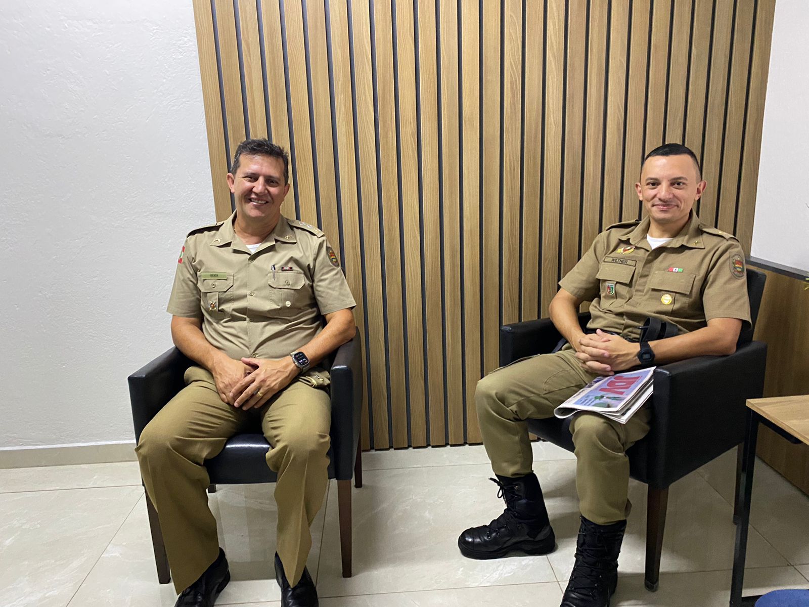 Fazendo uma visita de cortesia ao JDV, na tarde desta terça-feira, 26 de março, o Major Benda e o Subtenente Wiltner, diretor e vice do Colégio Policial Militar Feliciano Nunes Pires – Unidade Jaraguá do Sul, que funciona no prédio da Escola Darci Franke Welk, no bairro São Luís.