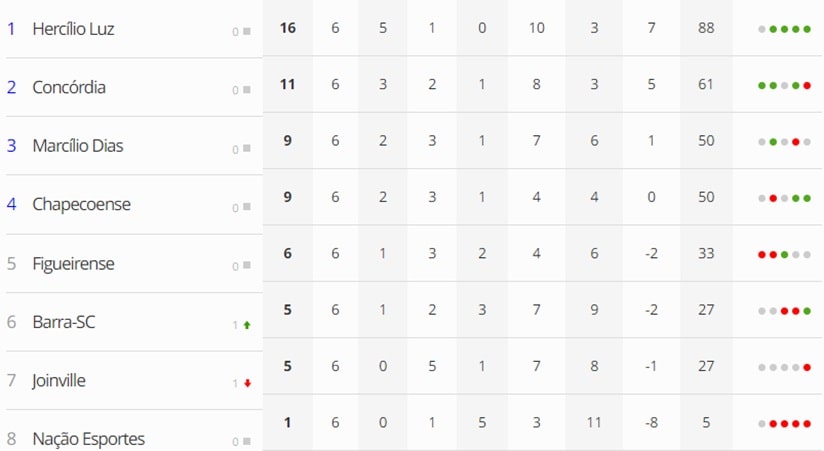Hercílio Luz dispara na liderança com 16 pontos; veja a tabela completa