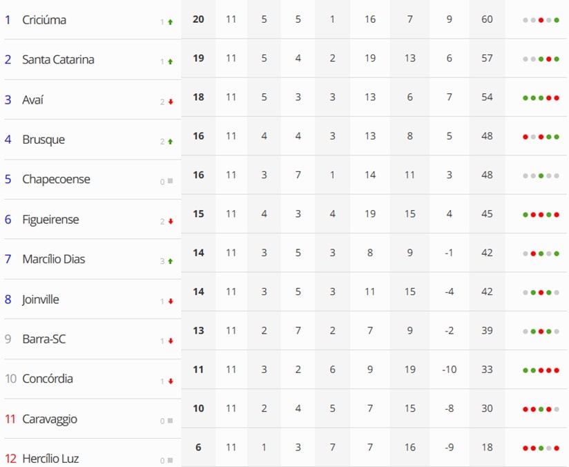 O Avaí recebeu o Criciúma na Ressacada pela 11ª e última rodada da primeira fase do Campeonato Catarinense precisando de apenas um empate para se manter na liderança, mas viu o Tigre abrir 3 a 0 ainda no primeiro tempo para assumir o topo da tabela. Werik Popó, em duas oportunidades, e João Carlos fizeram os gols da partida.