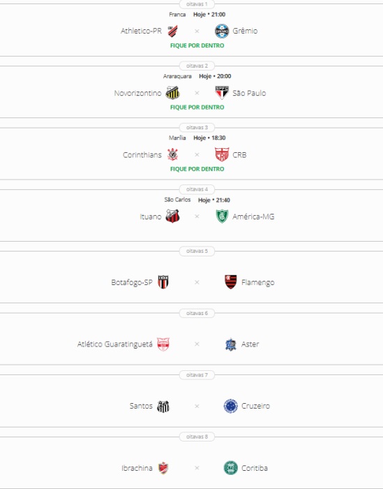 O maior campeonato de base do Brasil chega a fase de oitavas de final, com vários grandes caindo mais cedo, entre eles Atlético-MG, Palmeiras, Fluminense, Vasco, Botafogo e Internacional, além de todos os catarinenses. Os jogos da quarta fase do torneio inicia nesta terça-feira (16), em São Paulo, as partidas que não tem data acontece na quarta-feira (17).