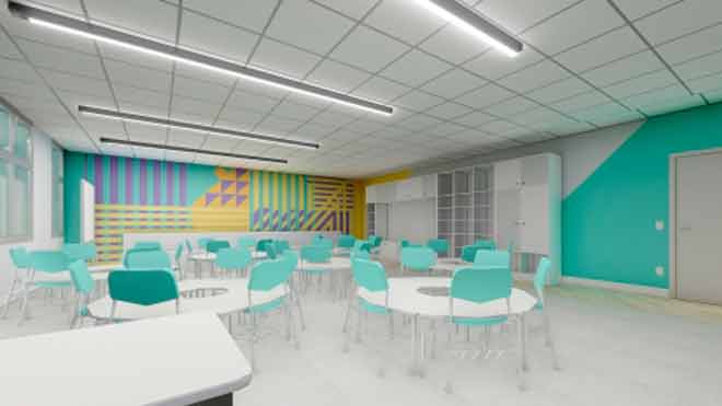 Estamos construindo mais de 7,6 mil metros quadrados de área que contarão com 32 salas de aula, laboratórios de ciências, artes, informática,