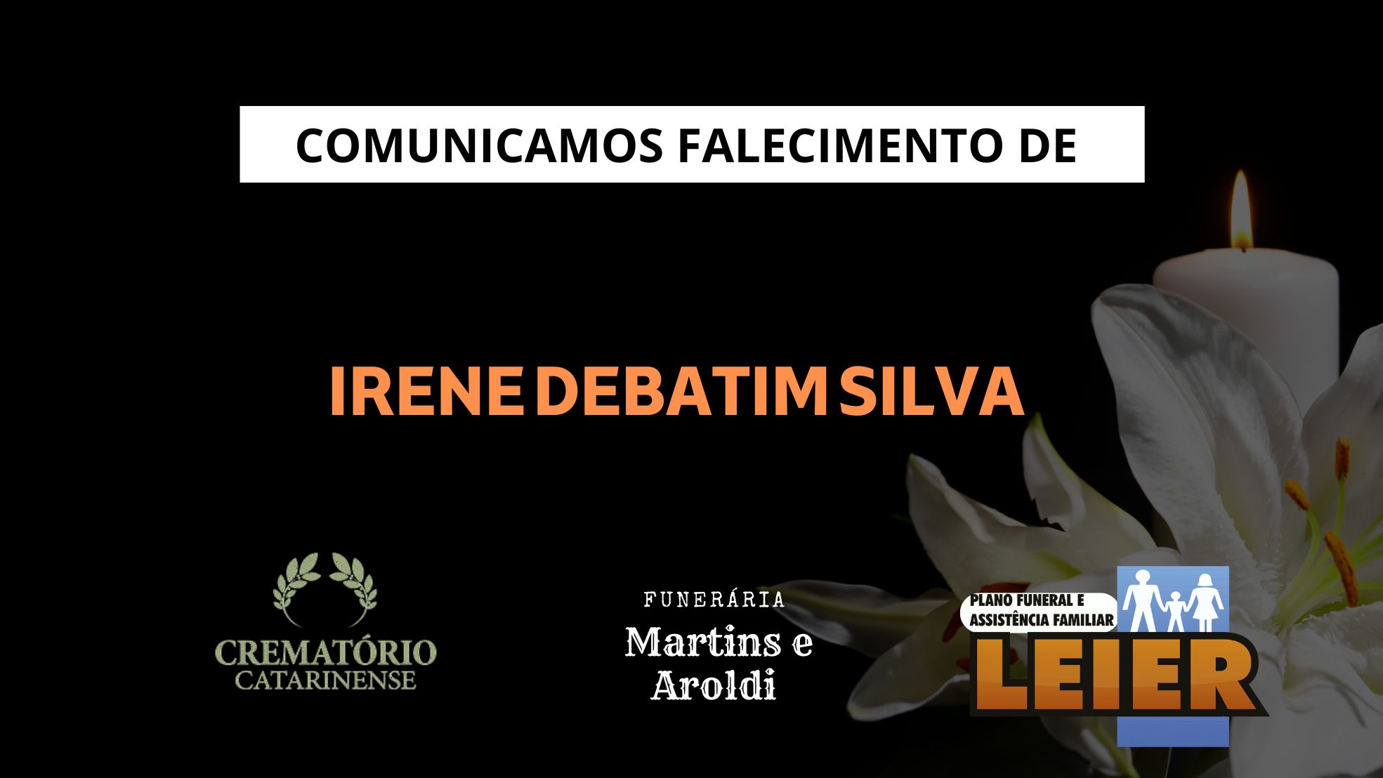 Plano Leier e a Funerária Martins e Aroldi comunicam o falecimento de Irene Debatim Silva