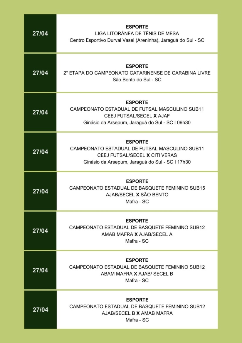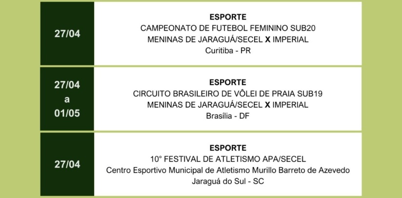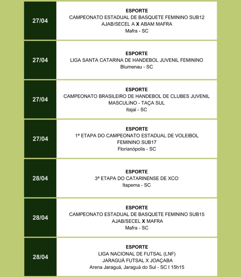 Poliesportivo: Veja a programação esportiva de Jaraguá do Sul