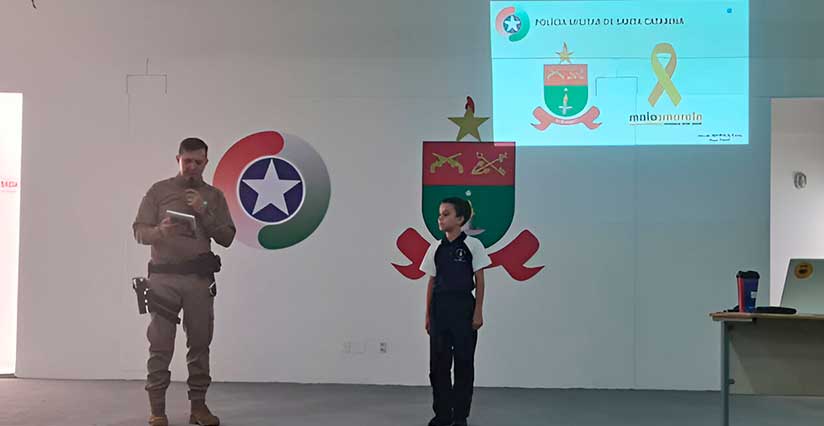Na terça-feira (7) uma palestra com o tema “Maio Amarelo – Paz no trânsito começa por você”, foi proferida pelo diretor do Colégio Policial Militar Feliciano Nunes Pires (CFNP) – unidade Jaraguá do Sul, major Antônio Benda da Rocha, para aproximadamente 120 alunos, tanto do CFNP quanto do ensino médio da Escola Estadual Darci Frank Welk.