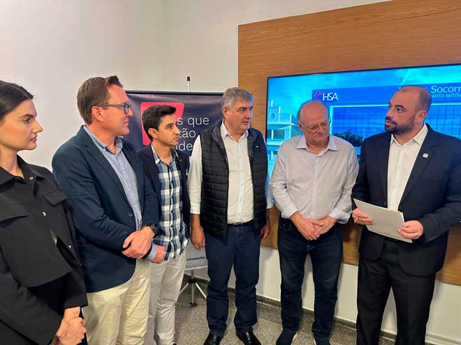 Na tarde de sexta-feira (11), o Hospital Santo Antônio (Santé-HSA), em Guaramirim, recebeu o secretário de Estado da Saúde, Diogo Demarchi Silva, e os deputados Vicente Caropreso e Antídio Lunelli, para a apresentação oficial do projeto do novo Pronto Socorro da instituição, que realiza mais de cinco mil atendimentos mensais à população regional.