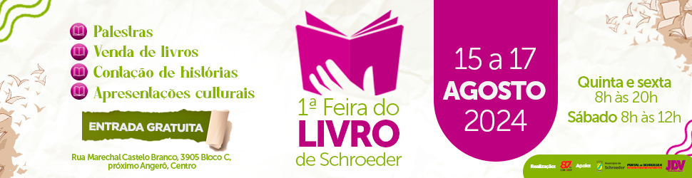 A 1ª Feira do Livro de Schroeder tem como objetivo fomentar a literatura, democratizar o acesso ao livro, incentivando a leitura e proporcionando uma oportunidade para que a comunidade possa se envolver com a cultura e o conhecimento. O evento tem apoio do Município de Schroeder, Portal de Schroeder, JDV e OCP News.