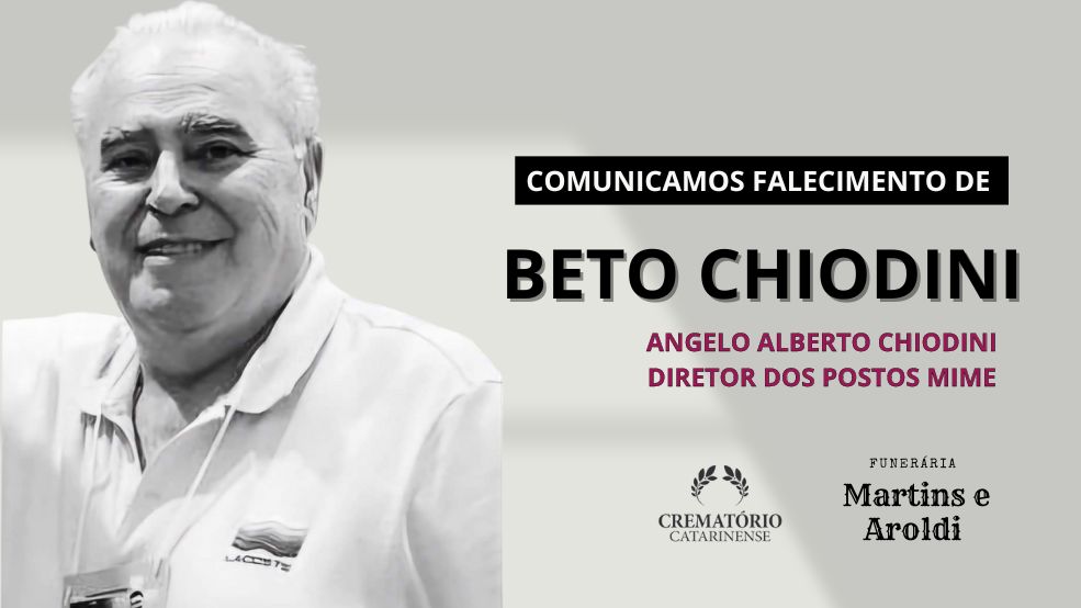 Crematório Catarinense juntamente da família em luto, comunicam o falecimento de Angelo Alberto Chiodini, Diretor dos Postos Mime