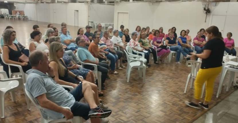 O encontro reuniu 46 pessoas, entre cuidadores de idosos, familiares e participantes das atividades do Centro de Convivência.