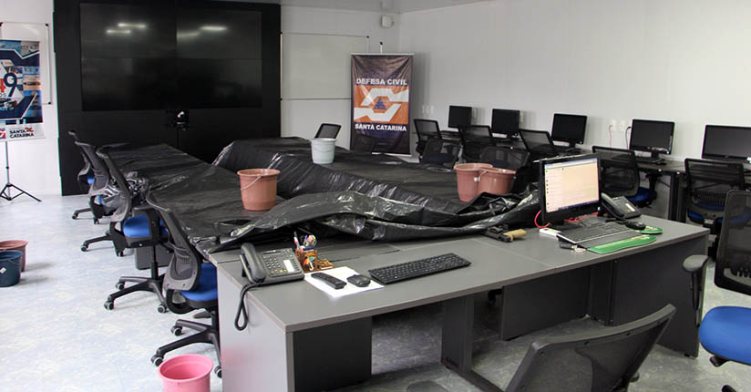 Tem goteiras dentro da sede regional da Defesa Civil de Jaraguá