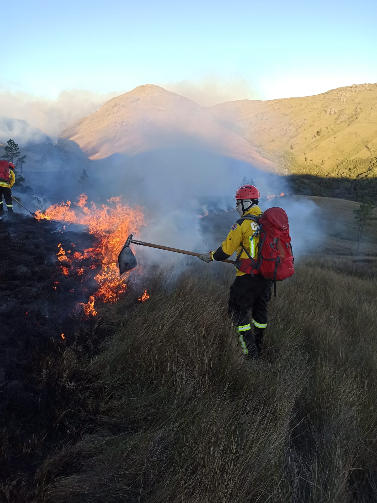 IMAGENS: Incêndio em mata da Serra de Garuva continua