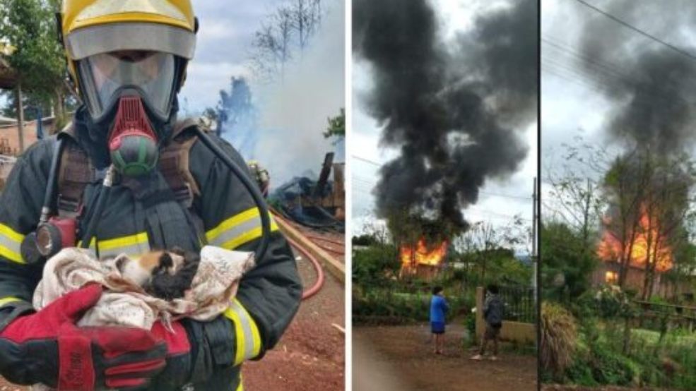 Gata e filhotes sobrevivem a incêndio e são encontrados em escombros em SC