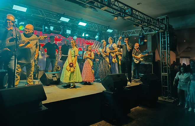 Para fechar com chave de ouro, a Adler’s Band, do Conjunto Rural Rio da Luz, presenteou os presentes com um show imperdível. O repertório rico e variado, que mesclou músicas da cultura germânica e brasileira, encantou a todos. As melodias contagiantes e a performance impecável da banda transformaram o evento em uma verdadeira festa, onde todos se uniram para celebrar a alegria e a tradição.