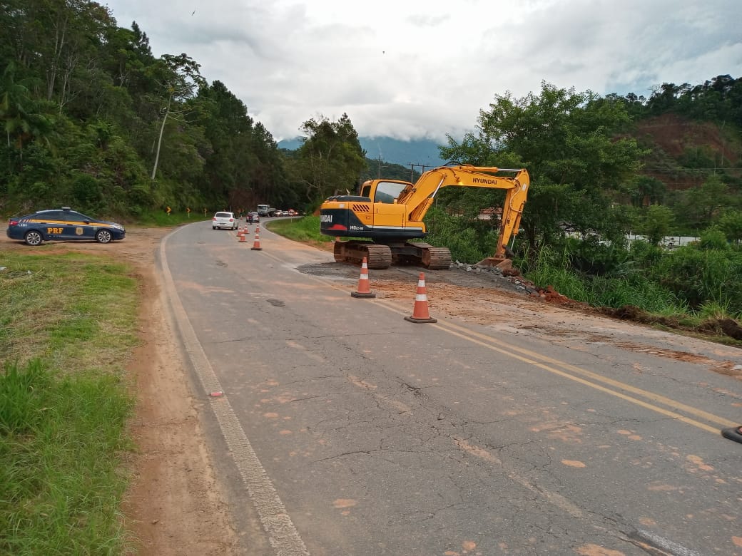 - Segue interditada parte da via que cedeu na BR-280 em Jaraguá do Sul