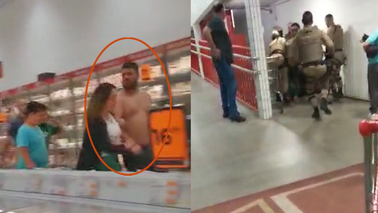 [Vídeo] Homem alterado é preso após agredir policial em supermercado de Chapecó