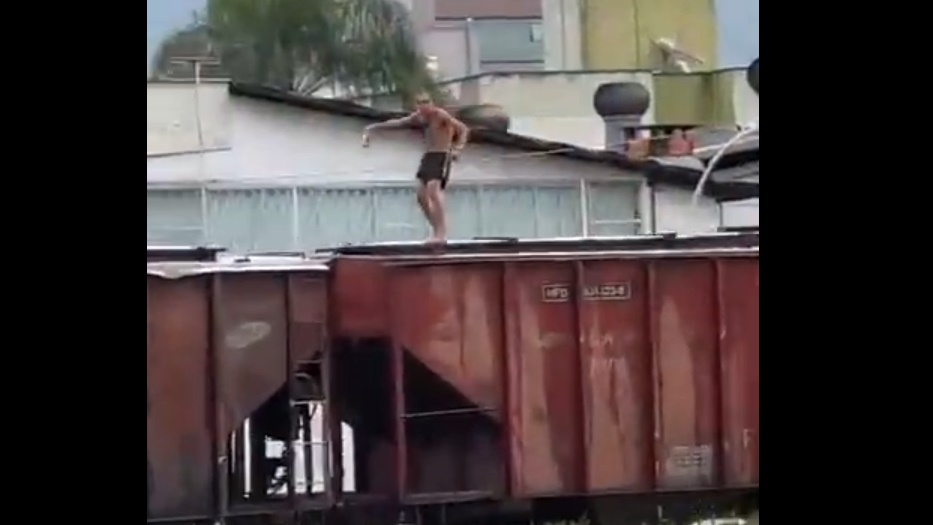 [VÍDEO] Homem é flagrado andando em cima dos vagões em Jaraguá