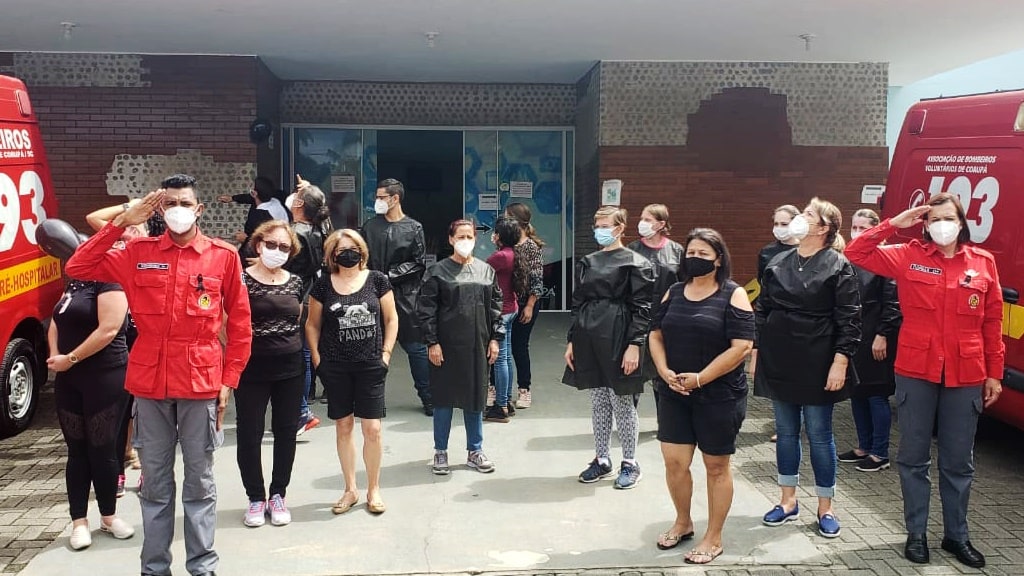 Os profissionais de saúde de Corupá se vestiram de preto na manhã da última sexta-feira (19), em um ato de solidariedade aos familiares que perderam alguém em decorrência da Covid-19 no município. O ato em respeito à vida contou com a participação dos Bombeiros Voluntários que também atuam na linha de frente.